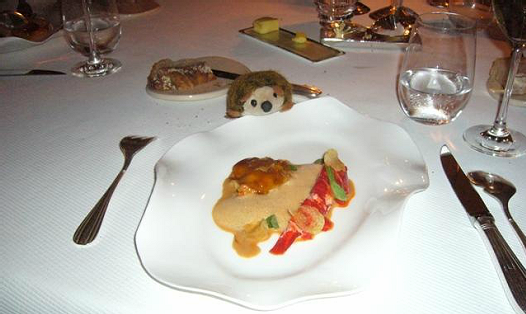 Da hießen die Köche Troisgros (drei Dicke) oder Robuchon und kochten, bis dem Gast das Wams krachte! Und heute? So wie die tätowierten Jüngelchen auf dem Fußballrasen mehr Chi-chi machen als Tore, so machen die Modeköche mehr (goldene) Koloratur als Kalorie. So kann ich mein Gewicht nie und nimmer halten, es droht die Abmagerung. Es sei denn, man pickt sich die Rosinen sehr sorgfältig aus dem Kuchen der Sternekocherei heraus. Zum Beispiel in Reims, wo Arnaud Lallement sich standhaft weigert, jeden Modeblödsinn mitzumachen. Also auf zum Auswärtsspiel in Frankreich, nach Jahren musste ich die Küche der Assiette Champenoise endlich mal wieder testen.